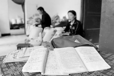 悲剧发生之后,全家人沉浸在悲痛之中,桌上放着的是小南的书包和未写完的作业。
