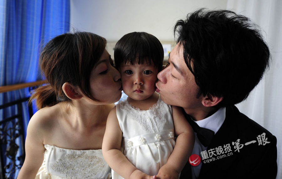 病房里,陈翠兰再次披上白色婚纱,丈夫穿上西服,女儿身着公主裙,留下了一张全家福。让在场人吃惊的是,女儿拍完照后,像突然懂事似的,偎依在妈妈怀里,怎么抱都不愿分开。一瞬间,陈翠兰再也忍不住了,眼泪大颗大颗落下来。女儿忙用小手擦着妈妈的脸:“妈妈,妈妈,不哭。”