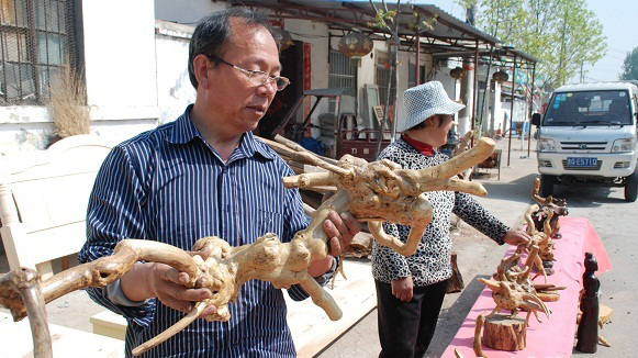 平邑农民巧手化腐朽 柴火木头变身艺术根雕