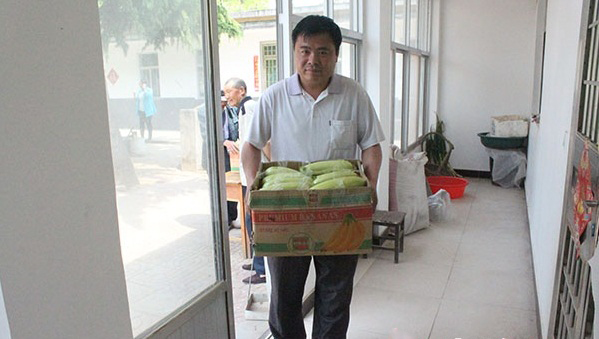 4月26日上午,郯城县港上镇敬老院内洋溢着欢声笑语,该镇珩头社区百发蔬菜种植基地的村民在镇民政办工作人员的陪同下,来到镇敬老院,为这里的20位老人送上了20箱新鲜采摘的西葫芦“爱心菜”。“我们基地蔬菜每天能收好几万斤,日子过舒服了,能够为孤寡老人送爱心,我们感到更快乐。”社区主任王传亮说。