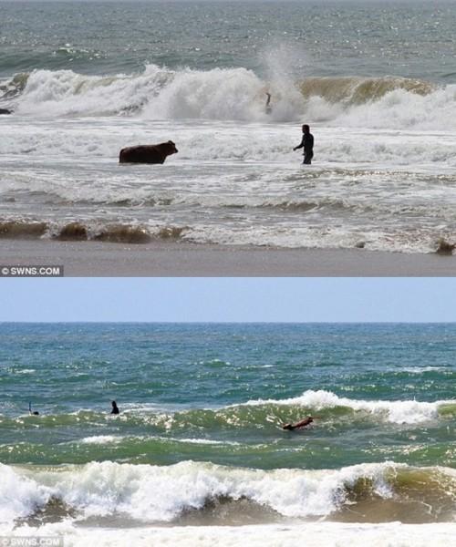 主人连忙查看,发现小牛不仅没有受伤,还在海中“游泳”。他说,他想把小牛弄上岸来,但小牛不从,大概朝着大西洋海中游了半英里。45分钟后,小牛才被赶到的海岸警卫队帮忙弄上岸。