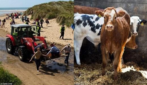 英国海岸警卫队出动,将小牛拉回“家”,原来它受惊掉下悬崖,不仅没受伤还在海中“畅游”了一番