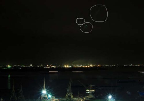 不明发光物位置已经用圈标注出来。