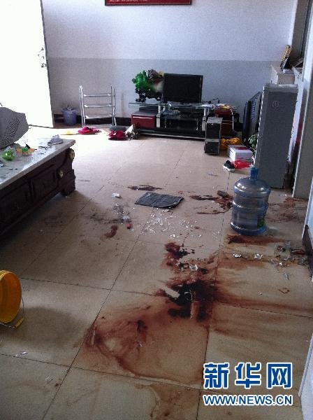 这是受害人柳文家客厅的血迹(6月20日摄)。近日,一则“山西永和县副县长冯双贵4名亲属夜闯民宅,大打出手,将人捅成重伤”的帖子在网上流传。发帖人称,参与施暴的冯双贵次子冯源在殴打受害人过程中,针对受害人的质问不断宣称:“我爸是县长,在永和我爸就是国法……”态度蛮横恶劣引发网民义愤。网曝情况是否属实?“中国网事”记者日前来到永和县,就此事进行了调查。证实网帖反映情况基本属实,4名行凶者已被批捕,帖中涉及的副县长也被取消“县委常委、常务副县长”的提名。新华社记者 叶健