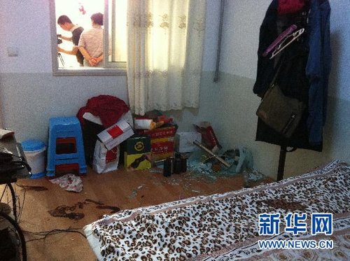 这是受害人柳文被破坏的卧室一角(6月20日摄)。