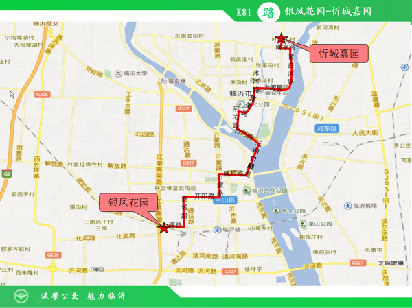 K81路公交线路由银凤花园运行至忻城嘉园,线路途经金源路、商城路、开阳路、沂蒙路、解放路、三河口隧道、祊河路、府右路、算圣路、沭河路、上海路、黄白河路、南京路。