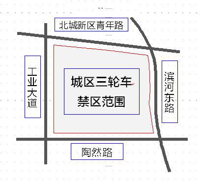 目前,城区三轮车禁行区域为工业大道(含)以东、陶然路(含)以北、滨河东路(含)以西、北城新区青年路(含)以南。