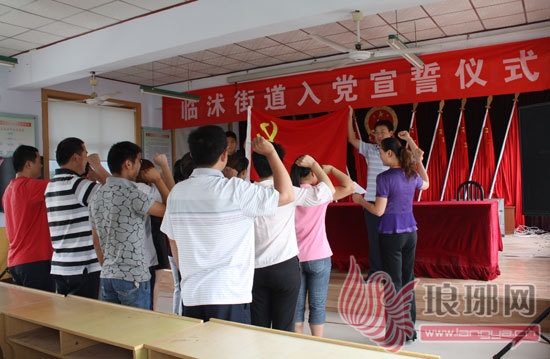 非常高兴能在建党90周年之际加入中国共产党,今后我将继续以党员的标准严格要求自己,不断提高业务素质,积极参加社会实践。”6月25日,在临沭街道新党员集中宣誓仪式上,新党员代表黄慧慧老师激动地说。