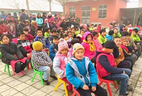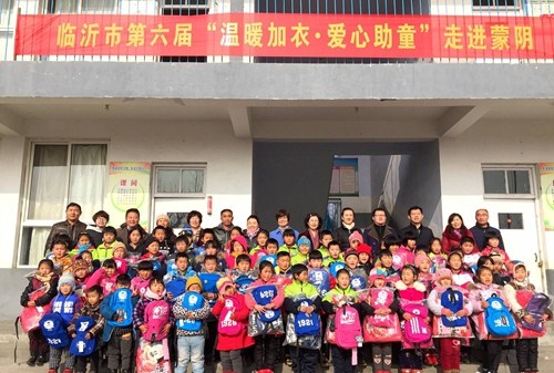 1月13日,临沂市第六届“温暖加衣·爱心助童”活动走进蒙阴县旧寨乡殷家洼联小。在严寒的冬日里,将崭新的御寒棉衣、书包送到82名孩子手中。