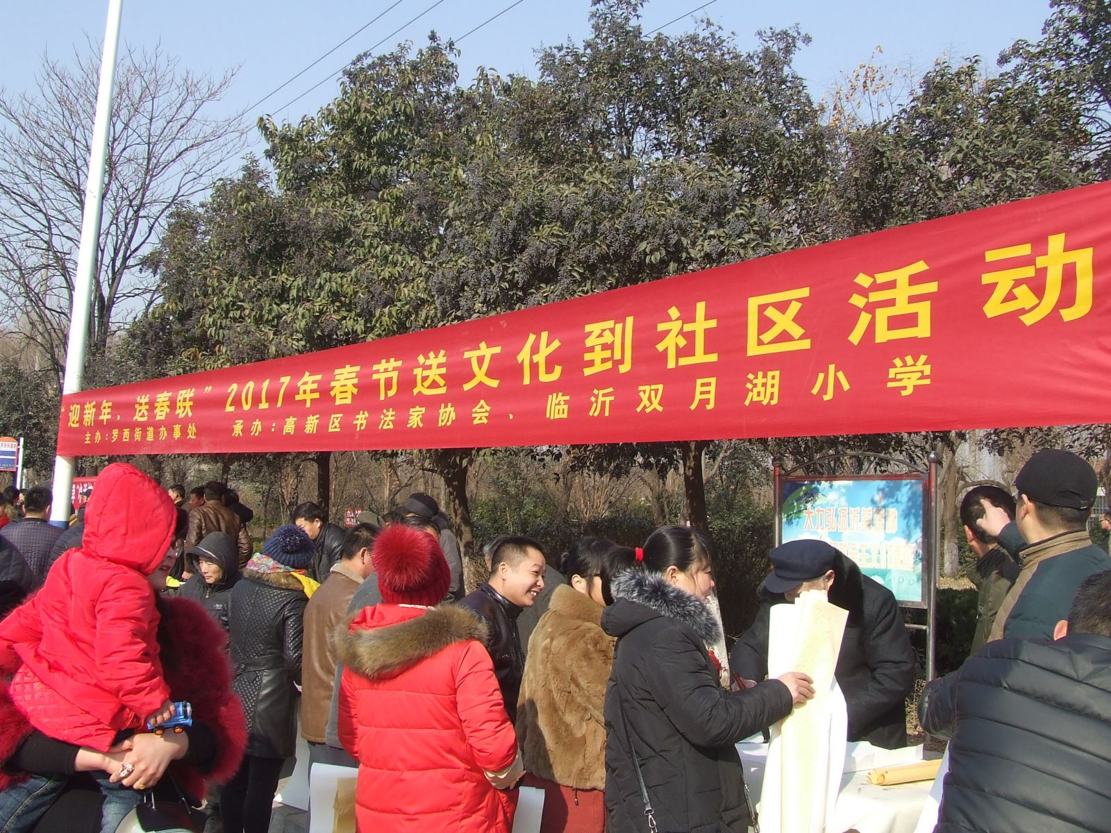 临沂网讯:无联不成春,有联春更浓。为迎接即将到来的新春佳节,向广大社区居民送上新春的祝福,1月23日上午,临沂市高新区罗西街道办事处组织开展了文化下乡“送春联到社区”活动,本次活动由罗西街道党工委主办,临沂双月湖小学和高新区书法家协会联合承办,共有30名书法家及师生参加了志愿活动,将节日的喜庆提前送到居民的身边。