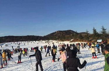 沂水雪山彩虹谷滑雪的游客