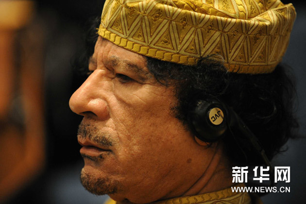 这张2009年2月2日的资料照片显示的是利比亚领导人穆阿迈尔·卡扎菲在埃塞俄比亚首都亚的斯亚贝巴出席非洲联盟(非盟)峰会开幕式。新华社记者徐速绘摄