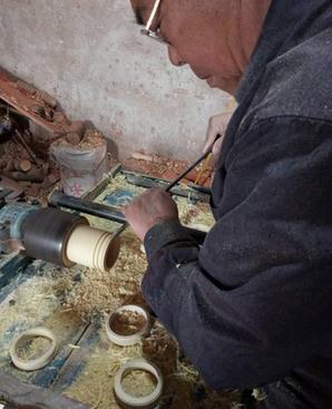 郯城木旋玩具第十五代传承人樊继美的工作场景