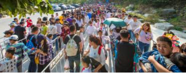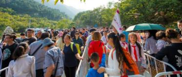 游客们有序排队,准备进入景区