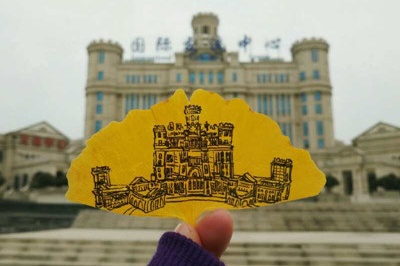 在金黄色的银杏叶上用马克笔一笔一划、细致的勾勒出临沂大学图书馆、博物馆、沂蒙大讲堂等7种标志性建筑物的轮廓,就连多少扇门窗都清晰可数,还有1张是临沂大学的英文缩写 “LYU”的镂空画。27日,记者见到了《把校园装进树叶里》的作者张格。据了解,张格是商学院的大一学生,在临沂大学微信部从事实习小编的工作,在微博上看到制作银杏叶书签视频,引发了创作灵感。