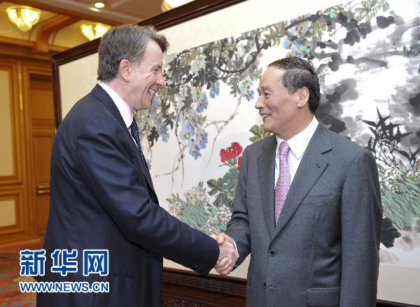 新华网北京6月29日电(记者张艺)国务院副总理王岐山29日在中南海会见英国前商务大臣彼得·曼德尔森。