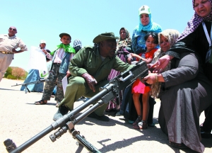 6月28日,利比亚,一名当地妇女正在学习如何使用武器。法国6月29日公开宣布,法军向利反对派空投了一批武器。