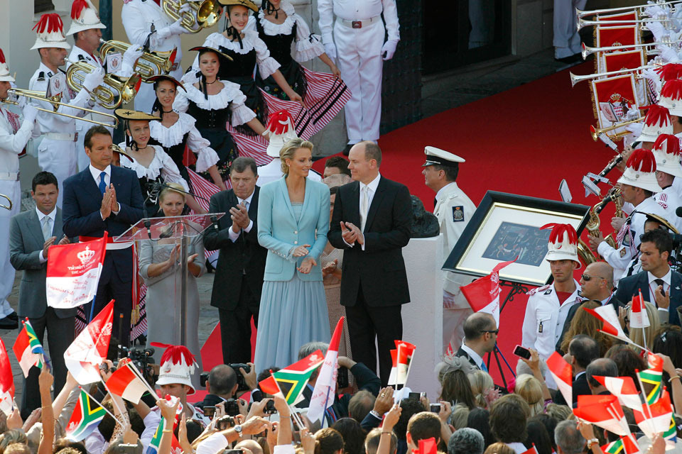 当地时间7月1日17时,摩纳哥国家元首阿尔贝二世亲王与未婚妻南非泳坛健将查伦·维特施托克的婚礼在摩纳哥举行。6000名摩纳哥居民受邀参加婚宴,新人出现在阳台上,当众献出深情一吻。7月2日凌晨,一场15分钟的音乐焰火晚会也点亮了摩纳哥夜空。