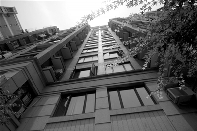 ②这是从跌落点向上拍摄的女童从10楼窗台坠落的楼房。