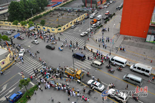 图片说明:大润发排爆现场,引来市民围观