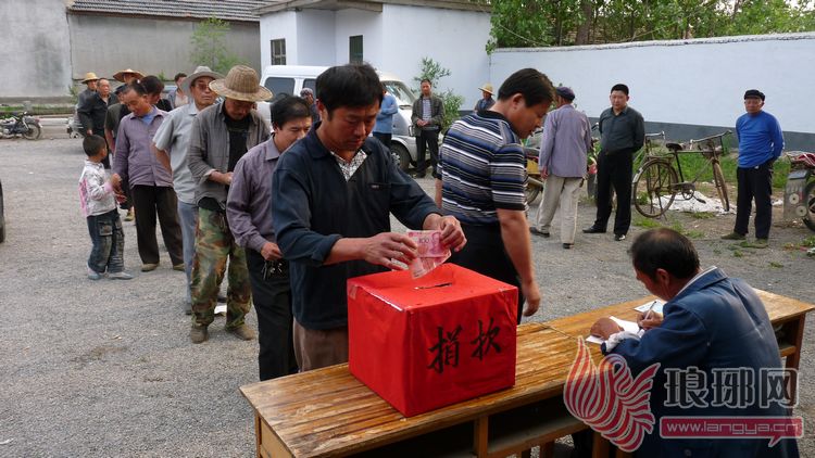 5月13日,大吴皇路村村委组织全体村民义捐,给赵彤辉筹集治疗费用。当爱心捐款箱摆放到桌子上以后,50元、100元、200元……村民们将一份份爱心款投到捐款箱。