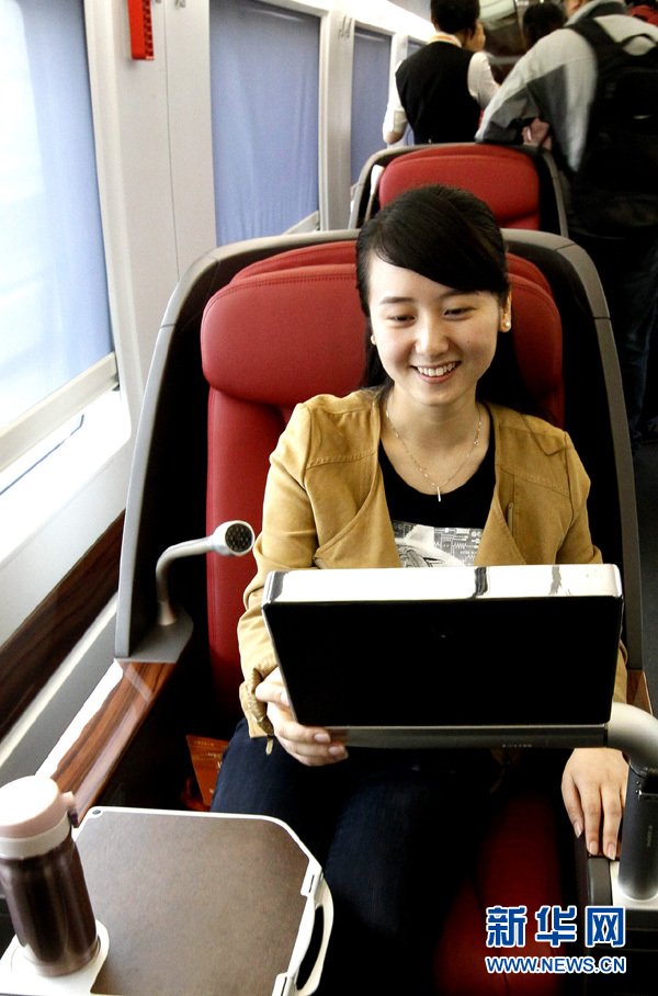 6月16日,在试运行的高铁列车内,通过动车组设备转化提供的3G网络,可以方便地上网。