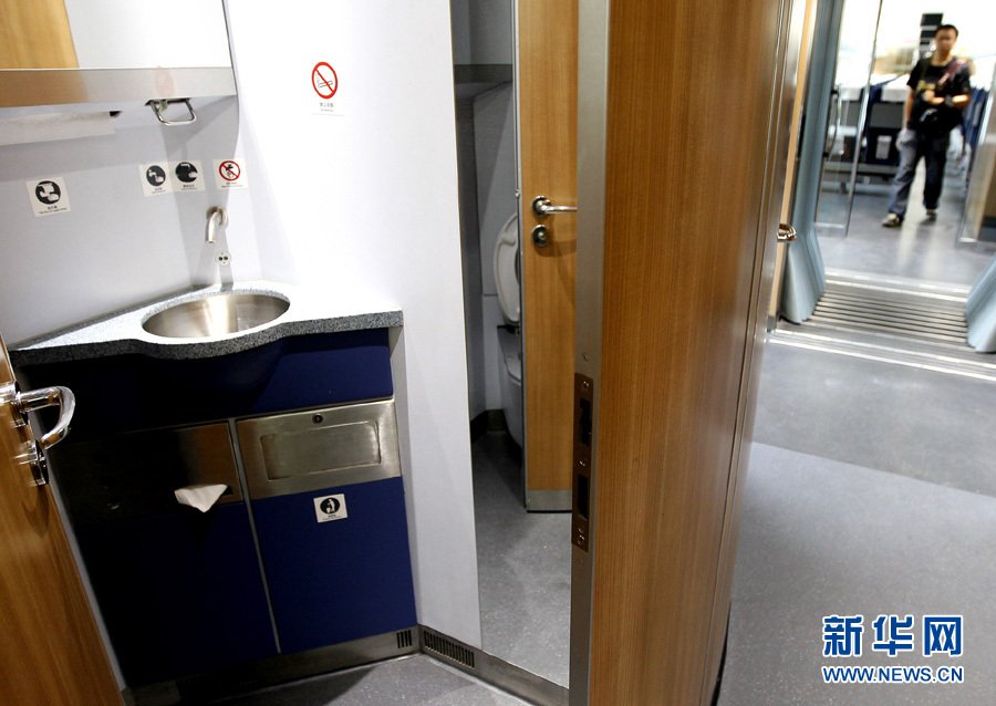 这是安装有无障碍设施的京沪高铁CRH380A动车组洗手间(6月16日摄)。