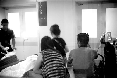 昨天下午5点,记者在朝阳医院的急诊抢救室中看到,一名十余岁的小女孩躺在病床上。数名亲朋在旁边照顾,但是他们拒绝向记者透露任何信息。据小何母亲称,这名孩子16岁,山东人,也是被劝退的孩子之一。她在接到学校退学通知函后曾对家人说:“妈妈,我对不起你,你就当我不存在了。”被送到医院抢救时,她对家长们透露,他们8名被劝退的同学昨天约好一起服药自杀,每个人口袋中都装着一瓶安眠药。下午4点多,校方几名负责人来到了医院,称10天后会给家长一个答复,让他们等待结果。