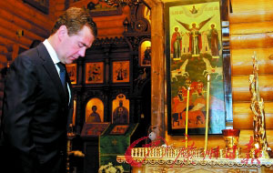 梅德韦杰夫总统参加哀悼仪式。