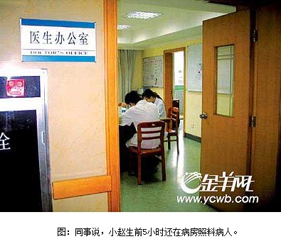 一名在该部上班自称是赵诗哲师兄的医生向记者表示:赵生前主要研究风湿方面的疾病,教导她的导师是全国著名的内医教授陈纪藩先生,赵明年就要博士毕业。“她的成绩一向不错,风湿方面的研究还是她的特长。”该医生说,赵无论是在学校还是在医院,和同学、同事的关系都处理得很好,很少见到她为什么事情和别人红过脸。