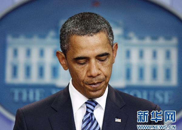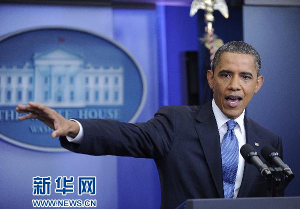 7月11日,在美国首都华盛顿白宫,美国总统奥巴马举行记者会。奥巴马当日再次敦促共和党合作达成削减赤字和提高债务上限协议,他同时表示美国不会在法定义务上出现违约。新华社记者张军摄