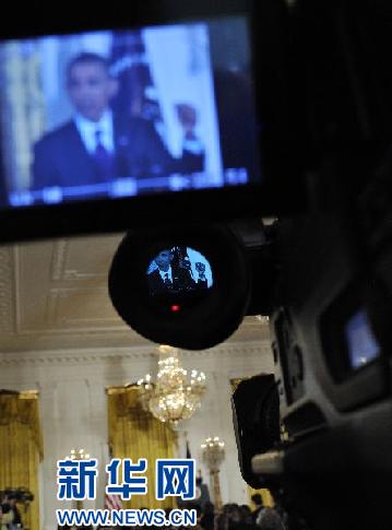 6月29日,在美国首都华盛顿,美国总统奥巴马在白宫东厅举行记者会。奥巴马当天就美国从阿富汗撤军、对利比亚军事行动和削减赤字等热点问题回答记者提问。新华社记者张军摄