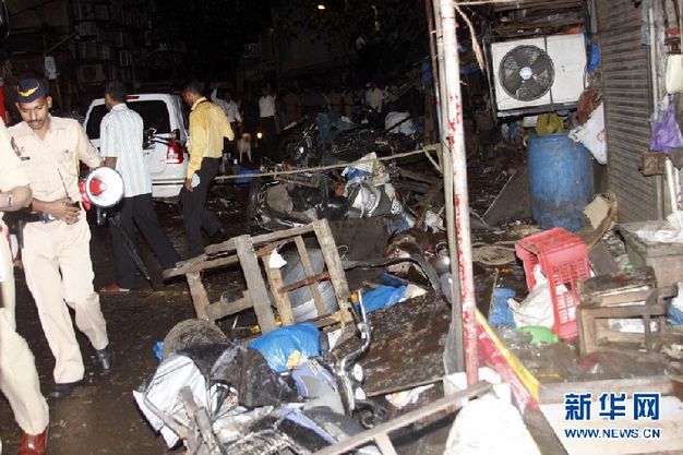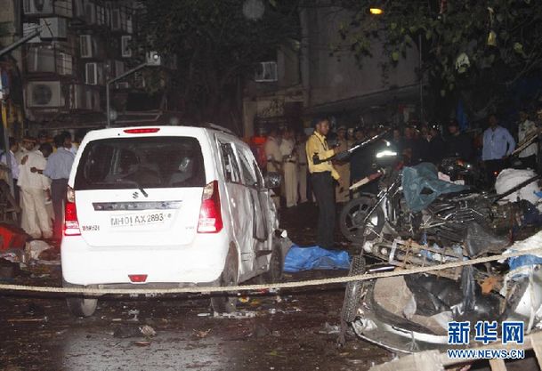 这是7月13日拍摄的印度孟买南部歌剧院外的爆炸现场。印度最大城市孟买当晚发生连环爆炸,至少造成20人死亡、113人受伤。 新华社发