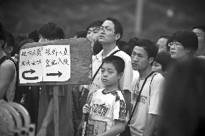 昨日,北大东南门,拥挤的队伍等待进入北大参观。据悉,北大目前每天限制游客5000人,游客需凭身份证等有效证件从指定入口进入。不少游客对此表示不满。北大保卫部表示,采取限游措施是为了保证校园暑假期间的秩序。“8月中旬,旅游高峰后将不再限游。”周岗峰 摄