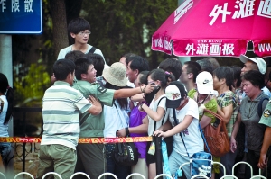 由于清华从18日起放暑假,昨日,清华西门门口,近百名观光游客被保安阻止。