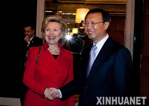 2009年11月14日,中国外交部长杨洁篪(右)在新加坡与美国国务卿希拉里·克林顿举行会谈。新华社记者徐金泉摄