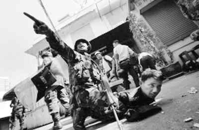 2010年5月,泰军方抓捕他信支持者“红衫军”。(资料图片)