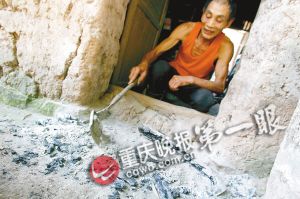 昨日,家住巴南区南彭镇巨龙桥村大围沟的李定勇,把烧得火红的炭火放在自家门口,围成一个圈。