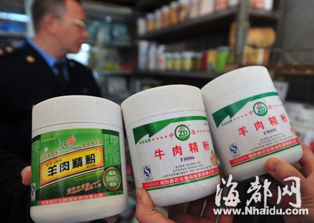 一“膏”激起千层浪!日前,国内多个地方相继揭开了“牛肉膏”的神秘面纱。东南网4月15日曾报道,福州市面上也有“牛肉膏”在售。福建相关部门也高度重视,省工商局有关负责人专门批示,要求进行排查。经过排查发现,榕城前期销售“牛肉膏”的商家将其悄然下架,一时间谈“膏”色变。然而,记者最近在榕城市场调查发现,虽然“牛肉膏”下架,但诸如牛肉精粉、羊肉精粉等食品添加剂仍在售。对于类似“牛肉膏”的食品添加剂进入餐饮领域,谁来监管?如何管?这成为一道难题。