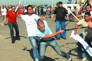 3日,法庭外,支持穆巴拉克的民众和他的反对者发生冲突。