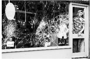 8月9日,伦敦西部一条街道的店主开始清理遭暴徒袭击的店面。