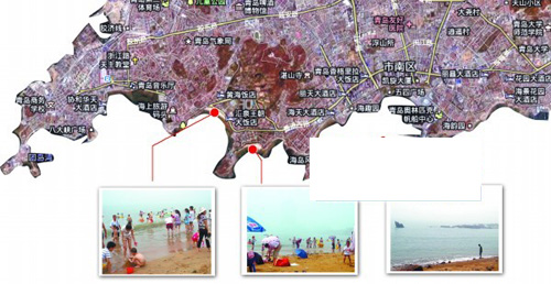 8月9日上午10时30分,记者来到了第一海水浴场 ,这里游客非常多。记者向海面望去,海水里基本上看不到浒苔了 ,只有极少量的浒苔残留在沙滩上。