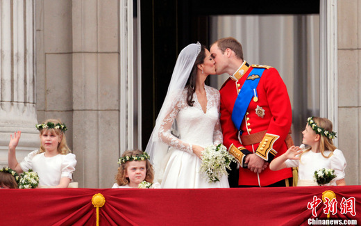 4月29日,英国伦敦,威廉王子与凯特在白金汉宫阳台深情一吻。当地时间11时,英国威廉王子与携手相恋多年的女友凯特・米德尔顿,正式步入婚姻殿堂,举办一场新世纪的“童话婚礼”。