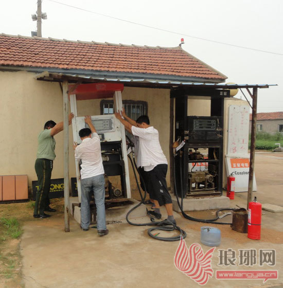 临沭依法强制拆除一非法加油站点(图)
