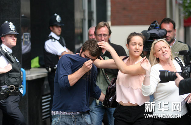 8月14日,在英国伦敦,一名涉嫌参与上周骚乱的年轻人在家人陪同下离开威斯敏斯特地方法院。自8月6日晚伦敦发生街头骚乱以来,英格兰地区已有超过2000人被捕,超过1000人被起诉。伦敦和曼彻斯特等地的法院不得不在周末加班审理犯罪嫌疑人。新华社发(高塔姆摄)