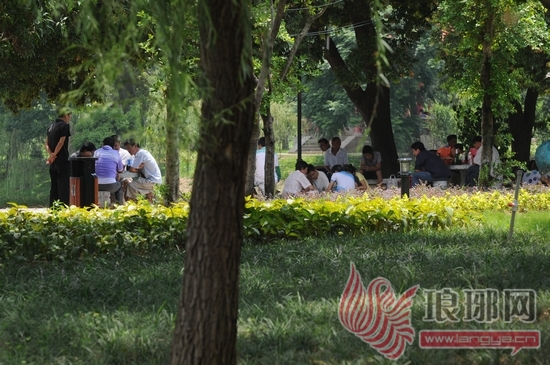 从事非法传销活动的人由于无事可做,公园便成为他们最好的去处。15日下午1点,记者来到来宾市金海公园,树阴下的排椅、路边的花坛边都坐满了人,打扑克、聊天、喝酒吃饭,还有哄孩子的。