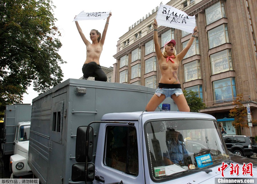 8月16日,乌克兰基辅,乌克兰著名主权组织“FEMEN”成员裸体抗议遭警察逮捕。FEMEN认为政府过于集中精力处置前总理季莫申科,而纵容社会上其它更多犯罪行为。乌克兰女权组织FEMEN以喜欢脱衣抗议而著名。