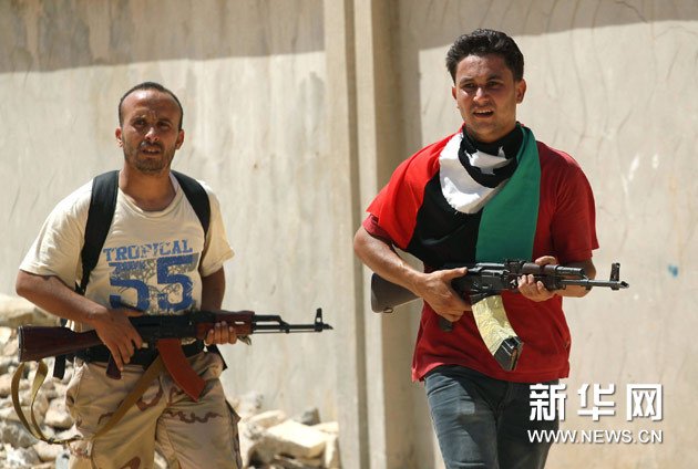 8月16日,利比亚反政府武装成员在扎维耶街头巡逻。新华社/法新