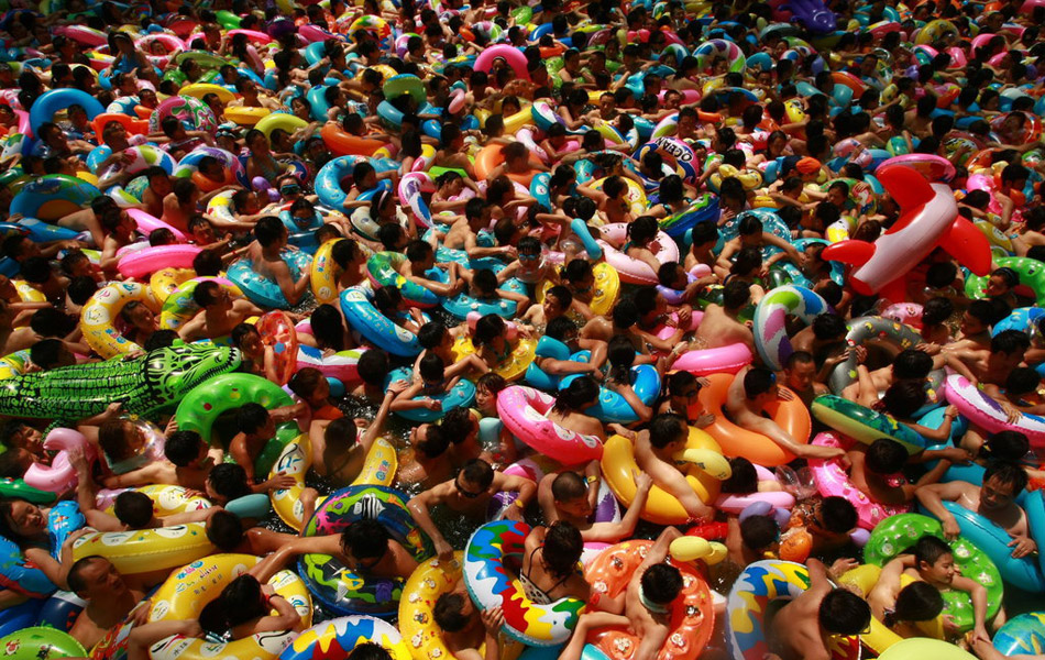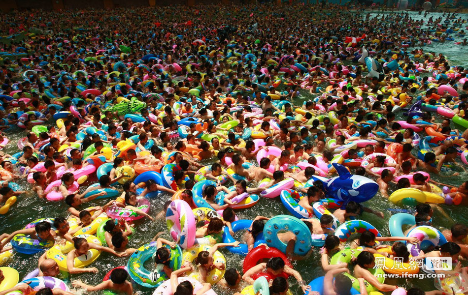 2011年8月14日,数万游客在位于四川省遂宁市大英县的中国死海室内漂浮池内激情冲浪,乐享酷暑水中的清凉。