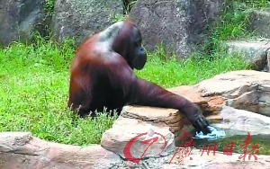 本报讯 22日,在日本东京动物园,一只聪明的猩猩居然会浸湿毛巾给自己洗脸,顺便享受下炎热夏季的清凉。它还会将毛巾拧干把脸擦干净。其一举一动和人类日常洗脸不差分毫。